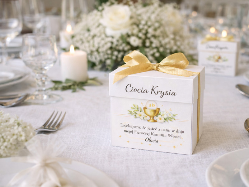 Imię dziecka, data Komunii, indywidualna treść podziękowania – to wszystko sprawia, że każdy element staje się unikalny. Goście bardzo często zwracają uwagę na takie detale. Widząc swoje imię oraz osobistą wiadomość, czują się naprawdę ważni.