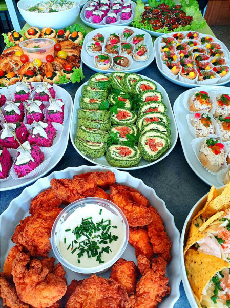 Oferta obejmuje catering na przyjęcia rodzinne i wydarzenia okolicznościowe, a także dania na wynos i z dostawą. Klienci często zamawiają tu menu na chrzciny, komunie, urodziny czy inne spotkania rodzinne, doceniając domowy charakter potraw i dużą różnorodność przekąsek.