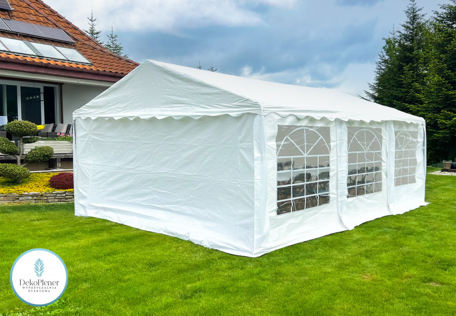 • Eleganckie białe namioty w różnych wymiarach z falbanką, z oknami, z możliwością otwarcia z każdej strony.