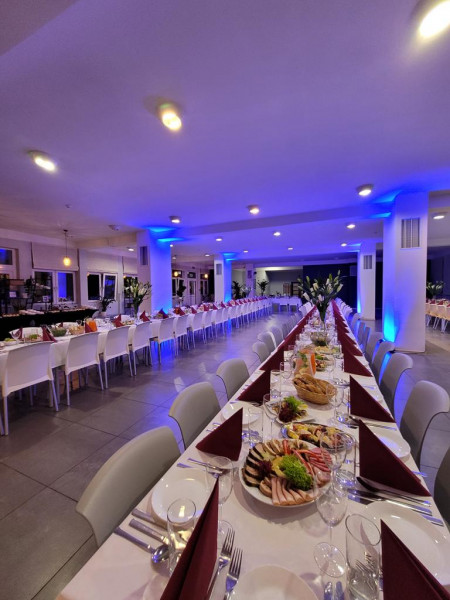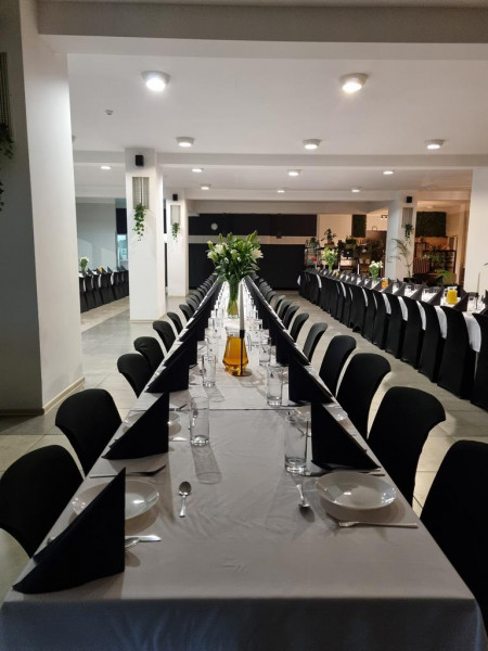Poza tym, że obsługujemy Klientów na zwenątrz, to również organizujemy przyjęcia w naszej sali, zapewniając pełną obsługę kulinarną i serwis.
