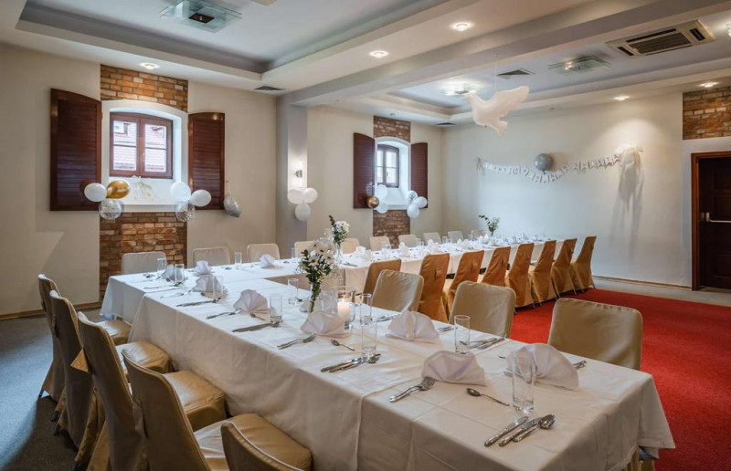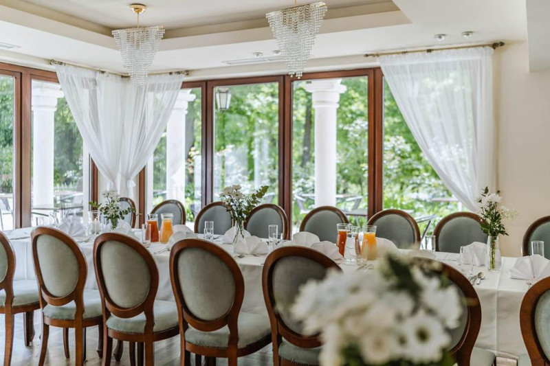 Obiekt oferuje przestrzenie idealne do organizacji chrzcin, komunii, urodzin, jubileuszy oraz wesel, zapewniając elegancką atmosferę i kompleksową obsługę przyjęć. Sale bankietowe utrzymane są w klasycznym stylu, co pozwala na stworzenie wyjątkowego klimatu dopasowanego do charakteru wydarzenia.