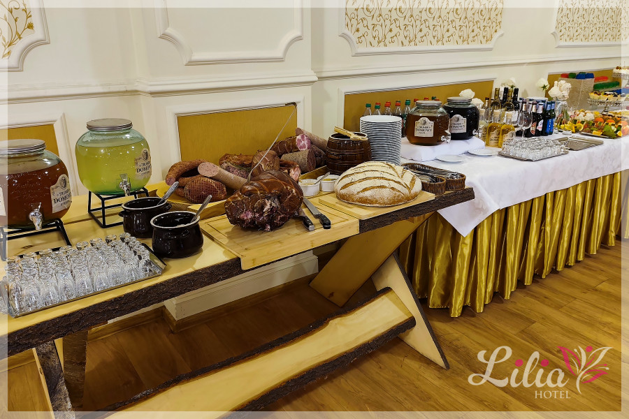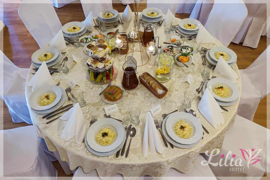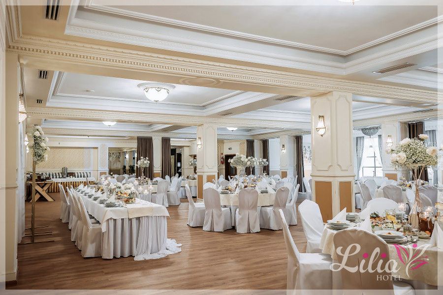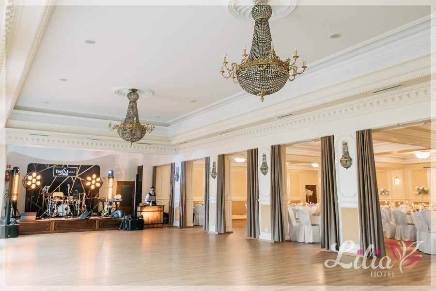 W Hotelu Lilia zajmujemy się kompleksową organizacją Twojego przyjęcia. Od technicznego wyposażenia sali, przez dekoracje, po logistykę – dbamy o każdy szczegół, abyś Ty mógł skupić się na celebrowaniu wyjątkowych chwil z rodziną i przyjaciółmi. Nasza Sala pomieści do 200 osób.