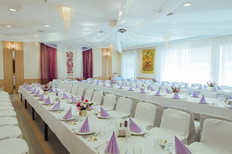 Przyjęcia mogą odbywać się w eleganckiej sali bankietowej lub w plenerze, w otoczeniu sosnowego lasu. Oferujemy oprawę muzyczną w postaci DJ-a, zespołu lub nastrojowej muzyki w tle. Dla Gości pragnących zostać na dłużej zapewniamy komfortowe pokoje noclegowe.