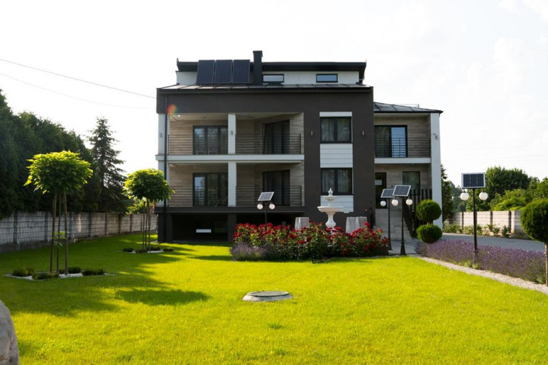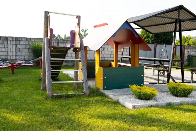 Na terenie obiektu znajduje się monitorowany i ogrodzony parking, plac zabaw dla dzieci, altana z grillem oraz miejsce na ognisko — wszystko w otoczeniu zieleni i spokojnej atmosfery.