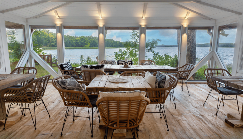 Dla miłośników aktywnego wypoczynku dostępne są liczne udogodnienia, w tym sprzęt wodny, jak SUPy i kajaki, a także dwa pomosty i plaże. Każdy dzień można rozpocząć od wybornego śniadania, które serwowane jest w restauracji z widokiem na jezioro lub w formie piknikowego kosza dostarczanego do namiotów. Dla pragnących jeszcze głębszego relaksu, gabinet terapeutyczny oferuje szeroką gamę zabiegów, które odprężają ciało i umysł.