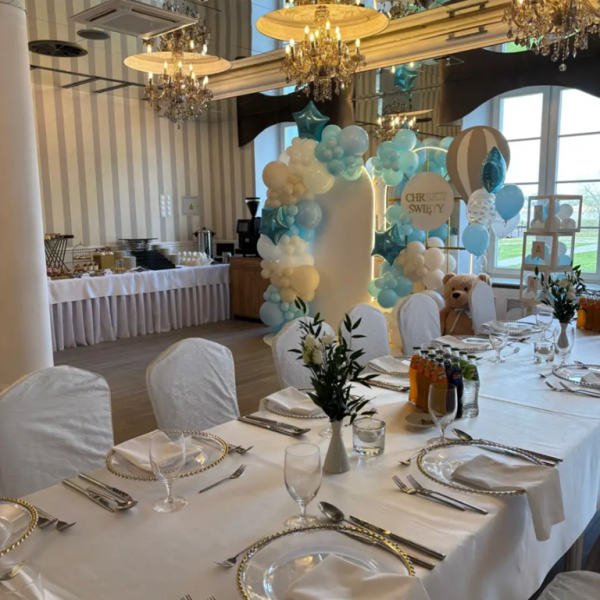 Chrzest dziecka oraz Pierwsza Komunia Święta to momenty pełne emocji i rodzinnej radości. W Pałacu Domaniowskim tworzymy uroczystą, a jednocześnie przyjazną przestrzeń do celebrowania tych chwil – eleganckie sale, piękne widoki na ogród i zalew oraz indywidualnie skomponowane menu to gwarancja wyjątkowej oprawy.