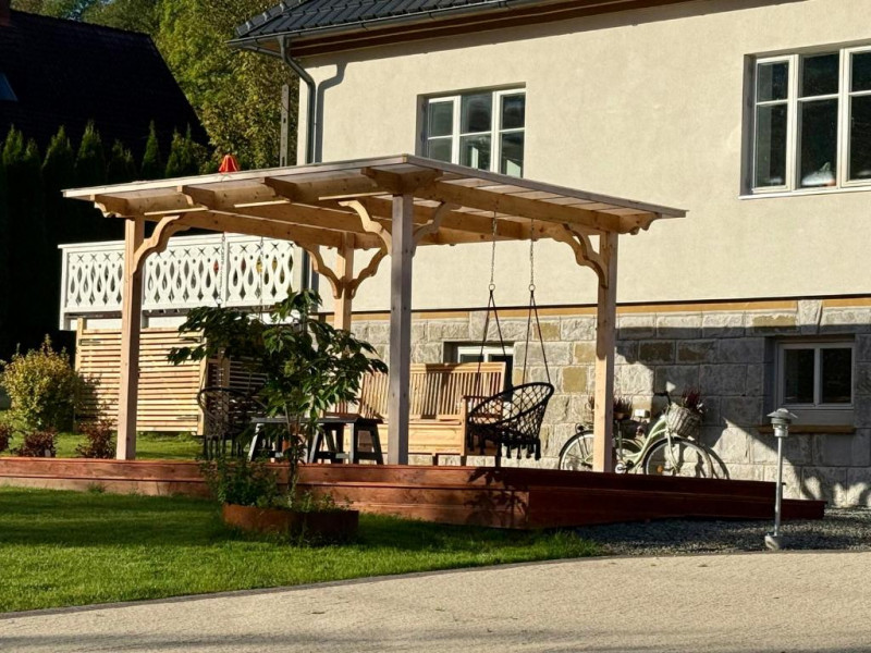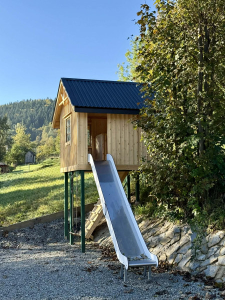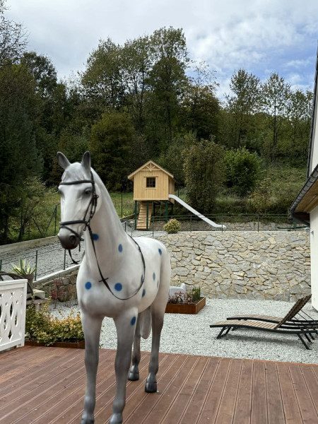 Dodatkowym atutem obiektu jest rozległy ogród oraz liczne udogodnienia sprzyjające wypoczynkowi i integracji gości – m.in. strefa relaksu, miejsce na ognisko czy przestrzeń rekreacyjna dla najmłodszych. Otoczenie lasów i gór sprawia, że każda uroczystość odbywa się w spokojnej i wyjątkowej scenerii.