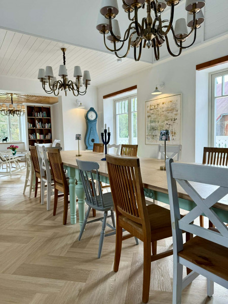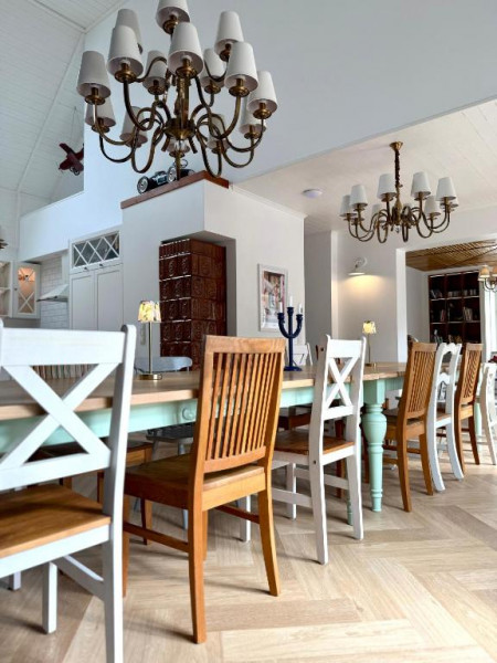Do dyspozycji gości pozostaje przestronna willa z komfortowymi apartamentami, wspólną strefą spotkań oraz dużym stołem, przy którym można wspólnie celebrować rodzinne chwile. Starannie zaprojektowane wnętrza łączą przytulny, domowy charakter z nowoczesnym komfortem, tworząc przyjazną przestrzeń zarówno dla dorosłych, jak i dla dzieci.