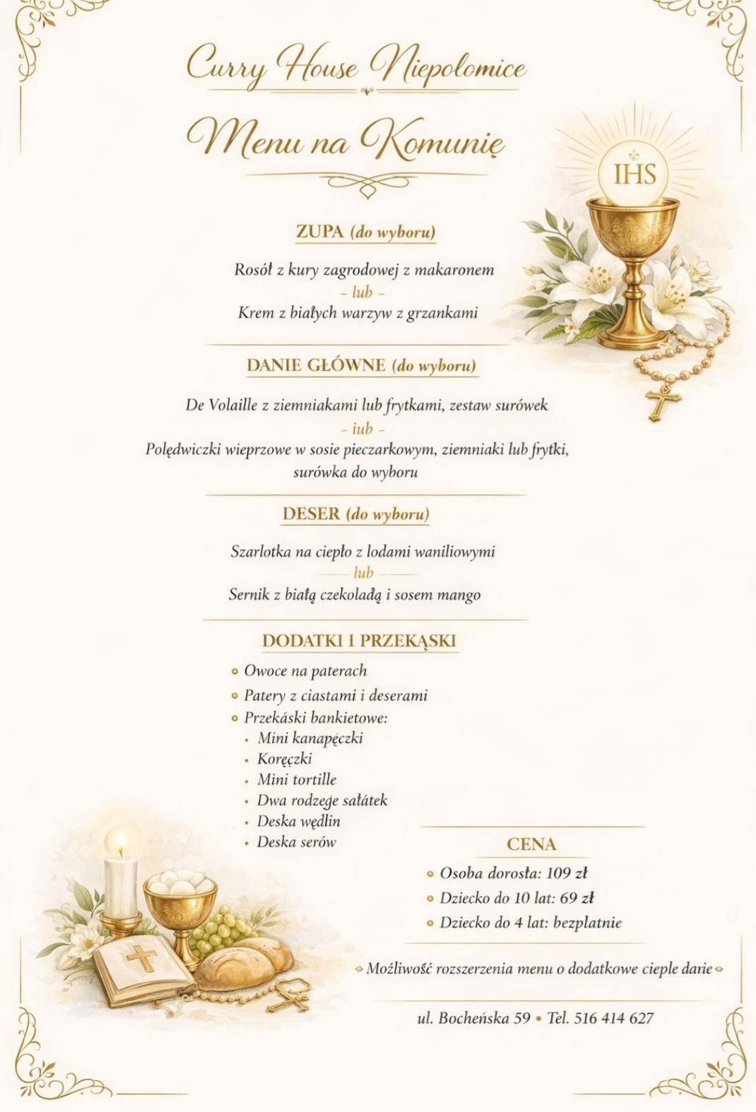 Curry House Niepołomice to miejsce, w którym aromatyczna kuchnia indyjska spotyka się z przytulną atmosferą. Restauracja oferuje bogaty wybór dań przygotowywanych według tradycyjnych receptur, z wykorzystaniem świeżych składników i oryginalnych przypraw. W menu znajdują się zarówno klasyczne curry, aromatyczne dania z tandoora, jak i opcje wegetariańskie oraz wegańskie.