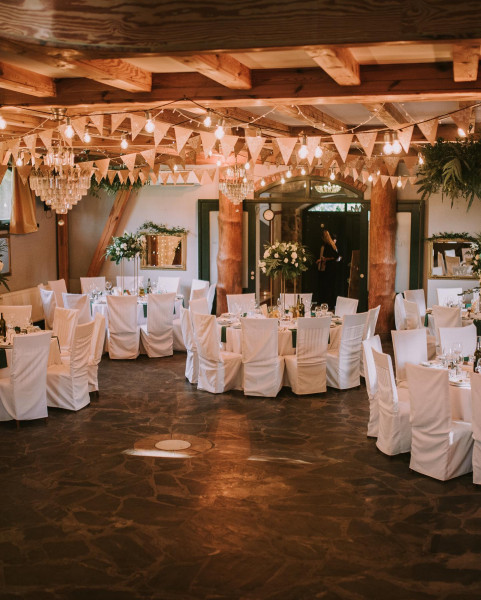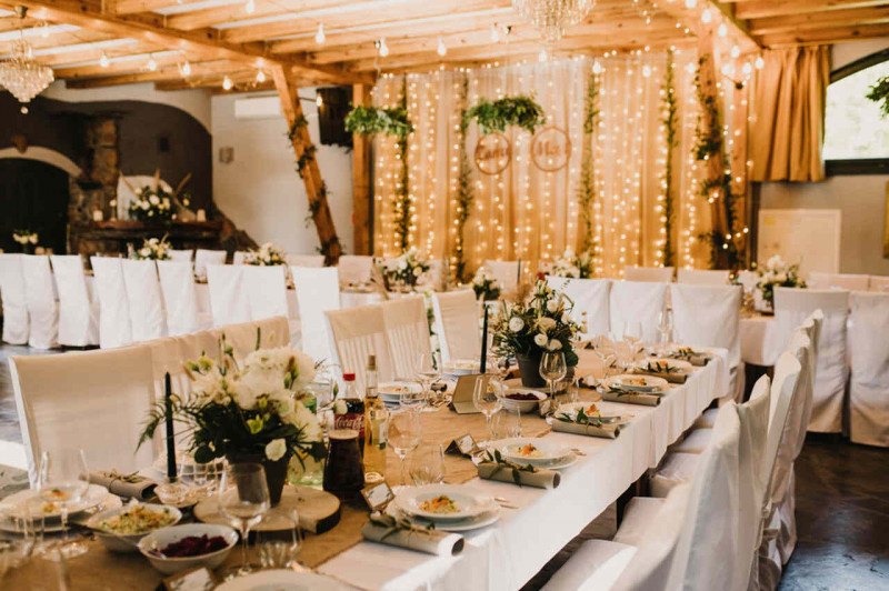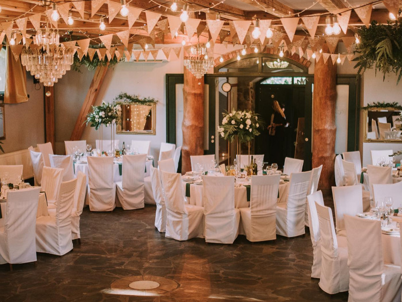 Dysponujemy klimatyzowaną salą bankietową w stylu rustykalnym do 80 osób, pokojami noclegowymi, w których jesteśmy w stanie przenocować 29 osób, dużym parkingiem, przepyszną kuchnią opartą wyłącznie na świeżych i lokalnych produktach, ogrodem w którym możemy zorganizować ceremonie plenerowe, a także zapraszamy wszystkich ze swoimi czworonożnymi pupilami.