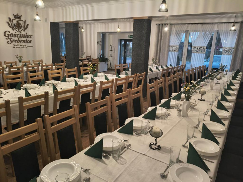 Gościniec Srebrnica w Koronowie to klimatyczne miejsce położone w spokojnej, zielonej okolicy, idealne do organizacji przyjęć okolicznościowych w otoczeniu natury. Bliskość lasów i terenów rekreacyjnych tworzy wyjątkową atmosferę sprzyjającą rodzinnym spotkaniom i odpoczynkowi.