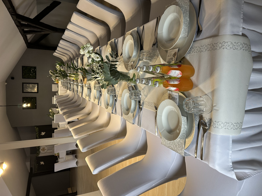 Sala bankietowa znajduje się na piętrze naszej restauracji. Mieści do 65 osób, posiada klimatyzację i osobną toaletę dla gości oraz bezpośrednie wyjście na ogród.