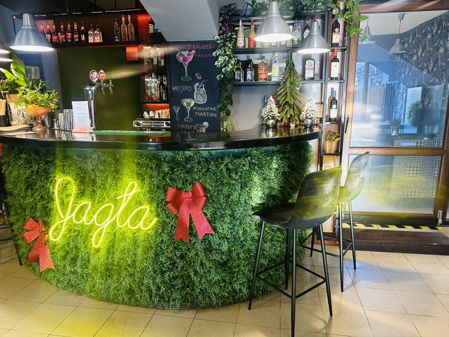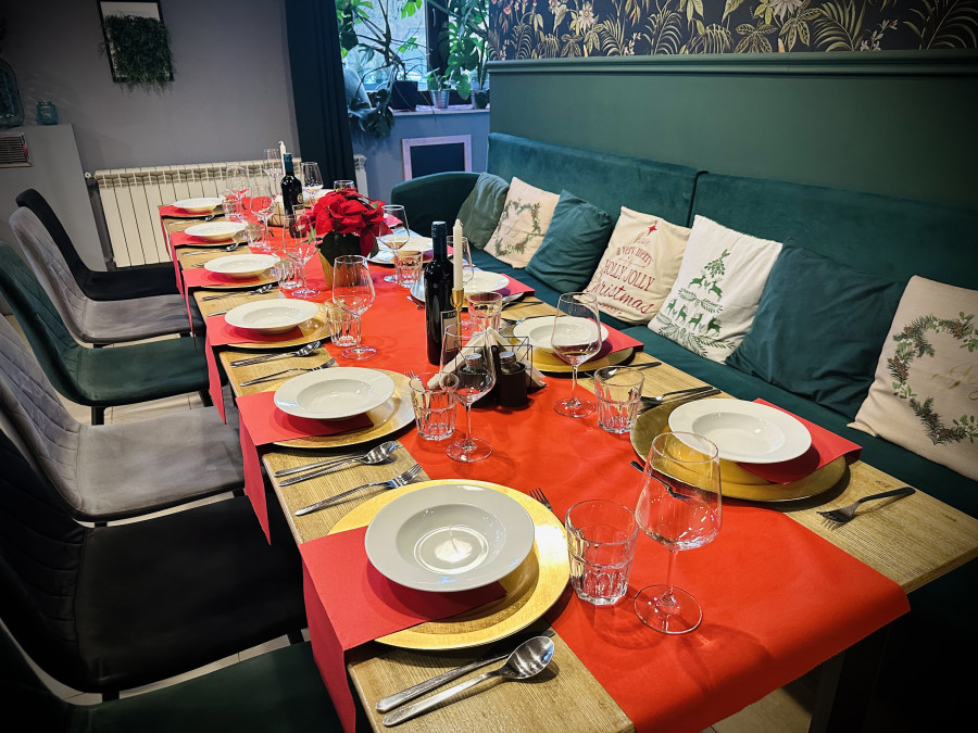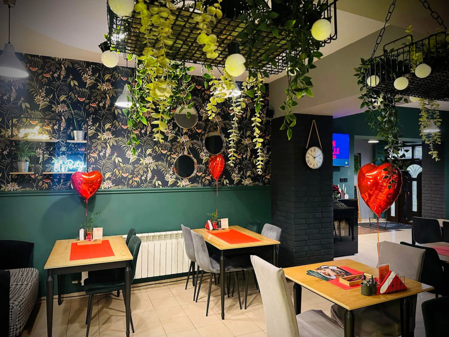 Sala restauracyjna posiada wygodne wejście z ulicy, osobną toaletę w tym dla osób niepełnosprawnych, klimatyczne i przytulne wnętrze. Mieści do 50 osób.