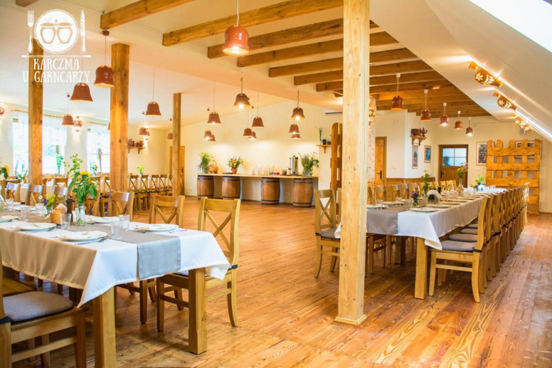 Drewniane wnętrza Karczmy, przyjazna obsługa oraz sąsiadująca Zagroda Garncarska tworzą przyjemną atmosferę.