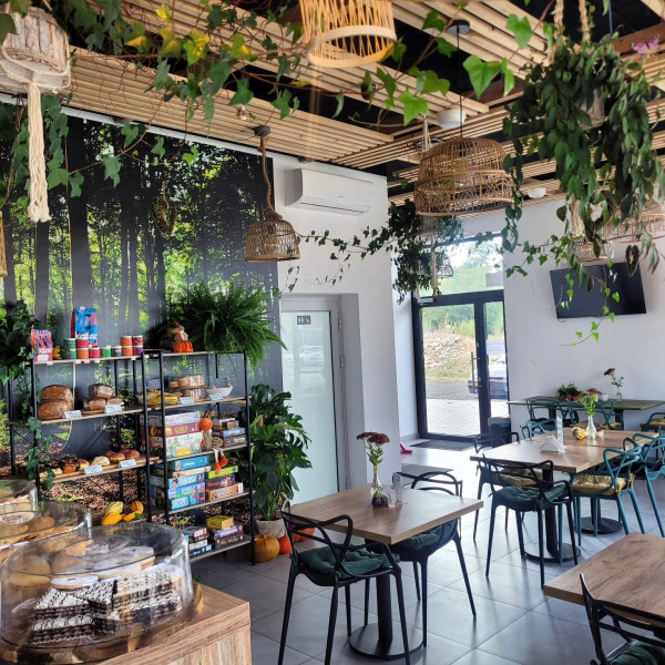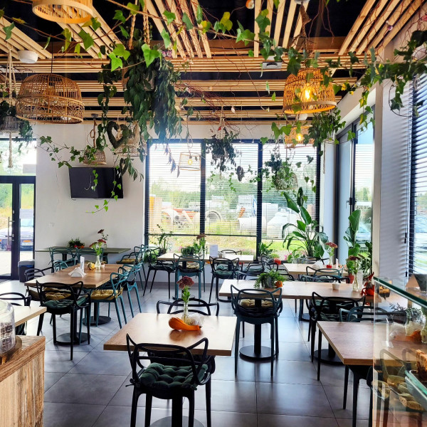 W naszej kawiarni możesz zorganizować kameralne i eleganckie przyjęcia okolicznościowe w pięknym, zielonym wnętrzu