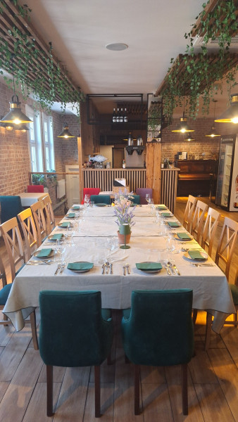 • podpiwniczona sala - kameralna przestrzeń również na ok. 35 osób, utrzymana w zabytkowym klimacie (miejsce ciekawe historycznie - przebiegał tam dawny kabel telegraficzny z czasów II wojny światowej, co nadaje jej unikalny charakter).