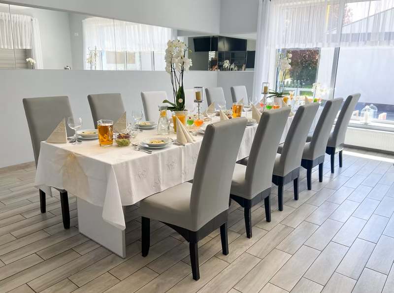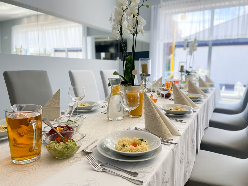 Na zamówienie przygotowujemy przyjęcia okolicznościowe, takie jak: chrzciny i roczki, komunie, wesela, urodziny, jubileusze i rocznice, stypy, a także rodzinne spotkania i obiady. Dysponujemy klimatyzowanym lokalem, pozostającym do wyłącznej dyspozycji gości.