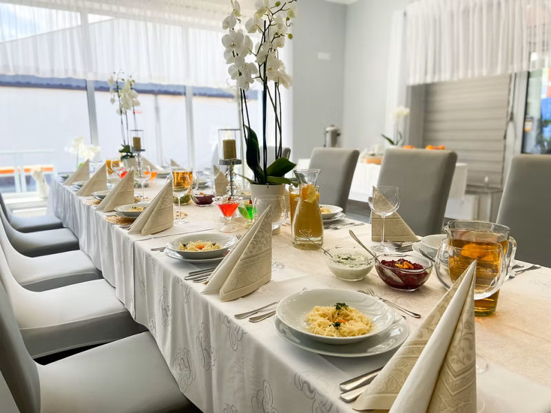 Serwujemy dania tradycyjnej kuchni polskiej, przygotowywane z najwyższą starannością i dbałością o każdy szczegół – od doskonałego smaku po apetyczny wygląd. Zwracamy szczególną uwagę na klimat i wystrój lokalu, dostosowując je do charakteru organizowanej uroczystości.