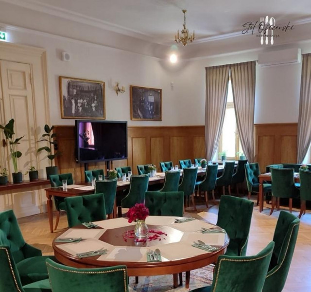 Na mniejsze przyjęcia zapraszamy do restauracji, a na większe – do sali mieszczącej ponad 100 osób. Wystrój i aranżacja przestrzeni zależą od Państwa wyobraźni – nasza sala jest w pełni elastyczna i pozwala stworzyć wymarzoną oprawę każdego wydarzenia. Na miejscu można również zorganizować ślub cywilny w eleganckiej, nowo otwartej sali.