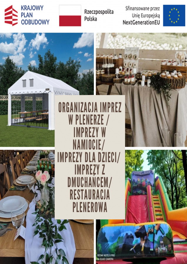 Zapraszamy do organizacji przyjęć z okazji Chrztu Świętego, wesel, komunii, jubileuszów i wszelkich uroczystości rodzinnych. Nasza kameralna restauracja wraz z dużym ogrodem i placem zabaw to idealne miejsce na Wasze wymarzone przyjęcie. W swojej ofercie posiadamy duży namiot wraz z wyposażeniem , zjeżdżalnię dmuchaną idealną dla przyjęć z udziałem dzieci. Organizujemy przyjęcia w namiocie bankietowym. Nasz w pełni wyposażony namiot wraz z parasolami grzewczymi umilą każdy wieczór.
