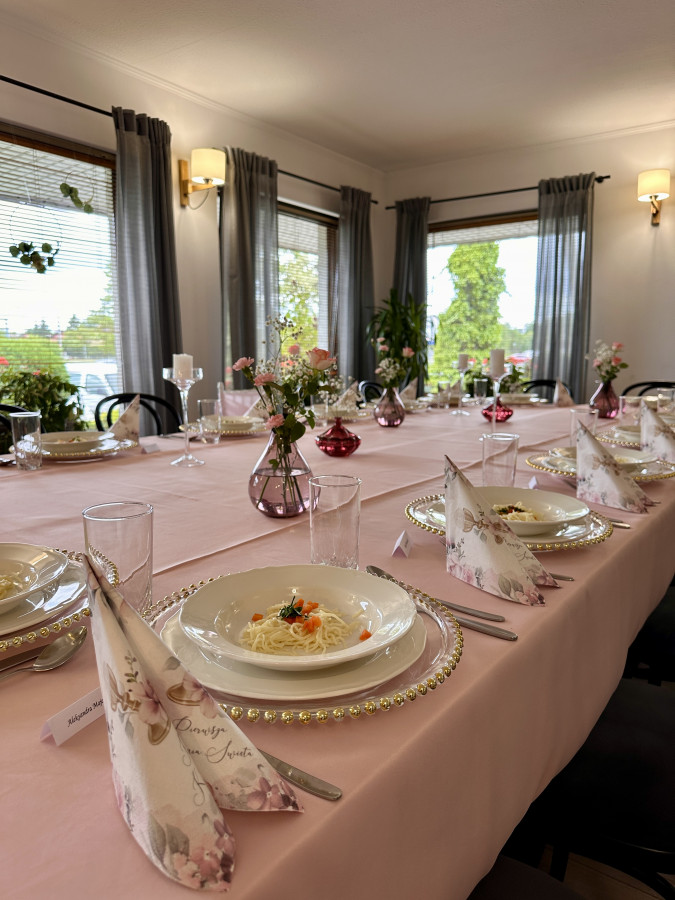 Zdecydowanie polecam to miejsce. Zorganizowaliśmy tam przyjęcie z okazji 80 urodzin. Omówienie scenariusza, wybór potraw i podpisanie umowy - fachowo, empatycznie (ważne nie tylko dla osób starszych), sprawnie. Sama impreza - rewelacja - wyśmienite jedzenie, profesjonalna i miła obsługa, całości dogląda szefowa. Mieliśmy do dyspozycji głośnik i rzutnik w cenie. Wrócimy na kolejną imprezę rodzinną. Latem do dyspozycji przepiękny ogórd, którego z zewnątrz nie widać. Wielka wartość dodana tego miejsca.
