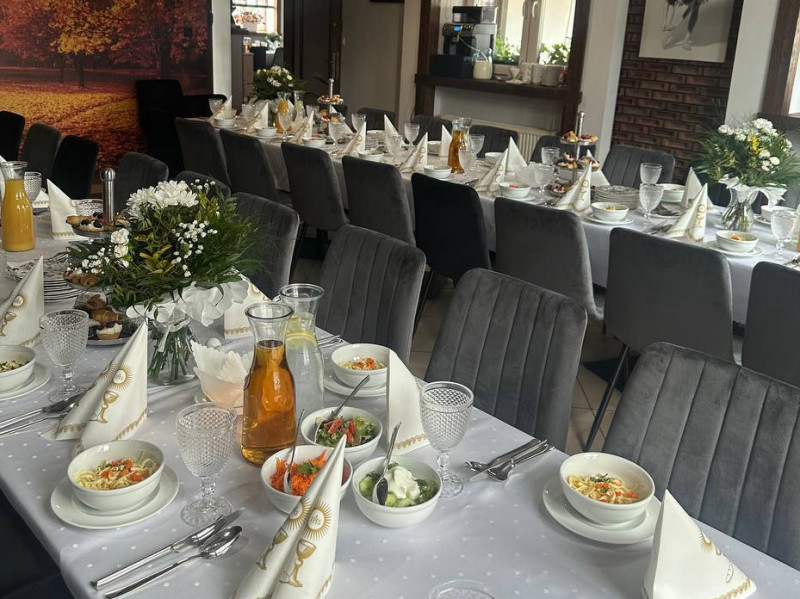 Podczas takich wydarzeń restauracja przygotowuje odpowiednio nakryte i udekorowane stoły oraz menu dopasowane do okazji, aby stworzyć przyjazną i uroczystą atmosferę dla gości.