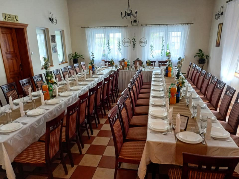 Organizujemy wesela, komunie, rocznice i inne imprezy – do 100 osób. Trzy sale i fachowa obsługa. Nocleg do 50 osób.