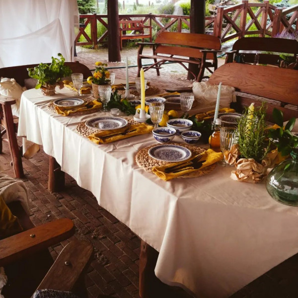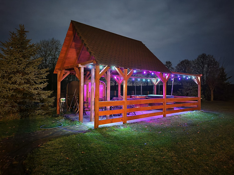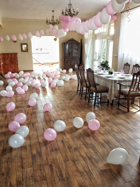 Na terenie posesji do dyspozycji gości znajduje się altana z grillem, miejsce na ognisko, a w sezonie letnim duży basen. Najmłodsi mogą korzystać z piankowych klocków i bezpiecznej przestrzeni do zabawy. To doskonałe miejsce zarówno na spokojny pobyt, jak i organizację wyjątkowych okazji — chrzcin, komunii, kameralnych przyjęć rodzinnych, wieczorów panieńskich i kawalerskich oraz innych uroczystości.
