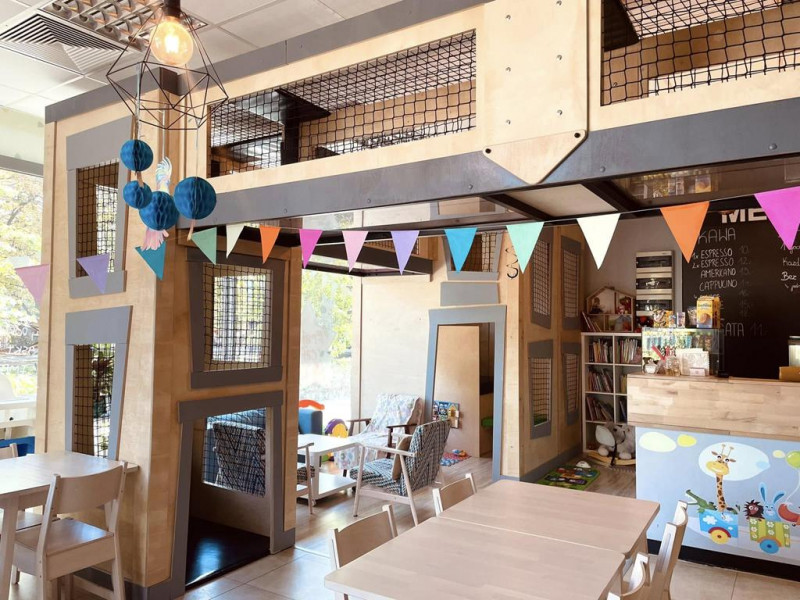 Do dyspozycji gości jest sala zabaw oraz wydzielona przestrzeń do organizacji przyjęć, co pozwala połączyć uroczystość z atrakcjami dla dzieci. Menu obejmuje kawę, słodkości oraz przekąski, a oferta może być dopasowana do charakteru wydarzenia.