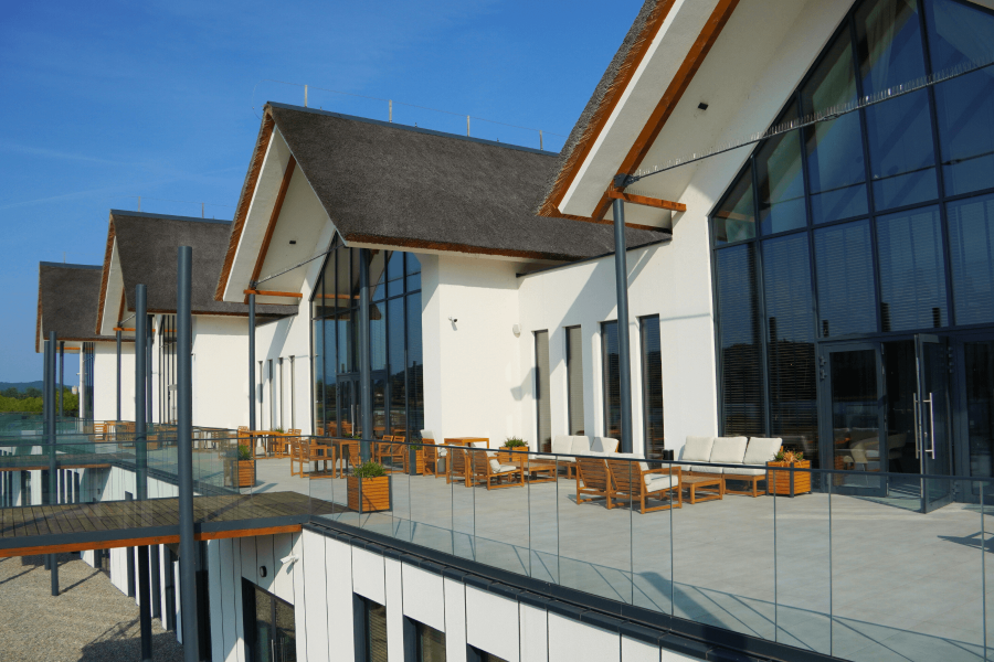 Restauracja Tarasowa znajduje się w budynku Rekreacja. Są w niej organizowane są zarówno mniejsze przyjęcia, jak i większe imprezy. Może pomieścić do 180 osób. Restauracja charakteryzuje się piękną ekspozycją na wschodnią stronę, rozpościera się z niej widok na stawy, plażę i zielone okolice. Do Restauracji przylega ogromny taras, który w pogodne dni jest również dostępny dla gości korzystających z tego lokalu.