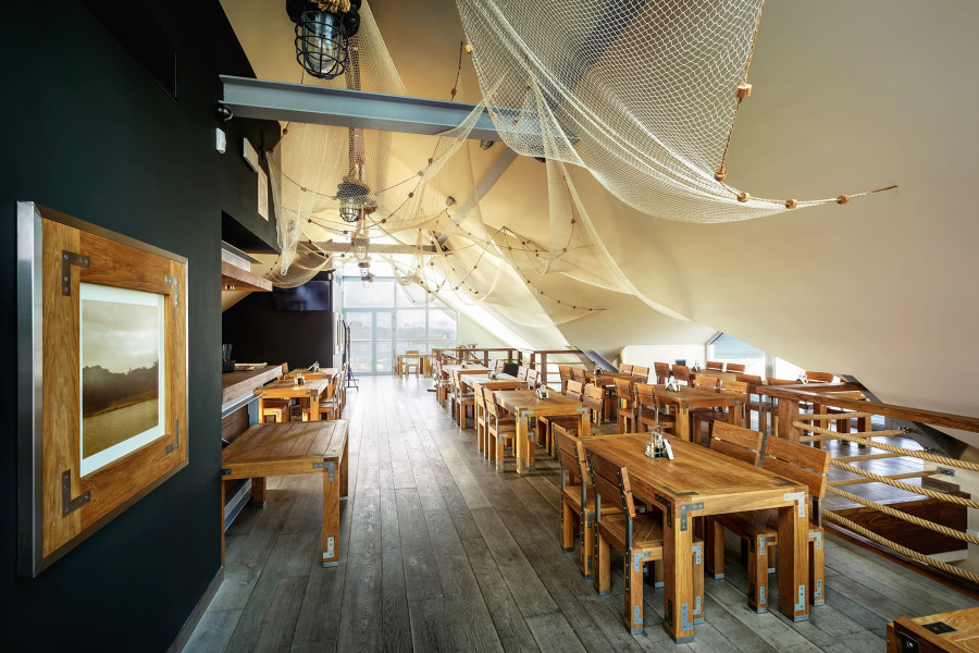 Górny Pokład to sala znajdująca się na piętrze nad Restauracją Główną. Posiada aż cztery tarasy, z których widoki rozpościerają się na cztery strony świata. Oferuje około 70 miejsc dla gości.