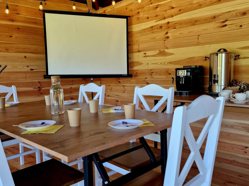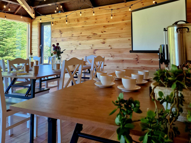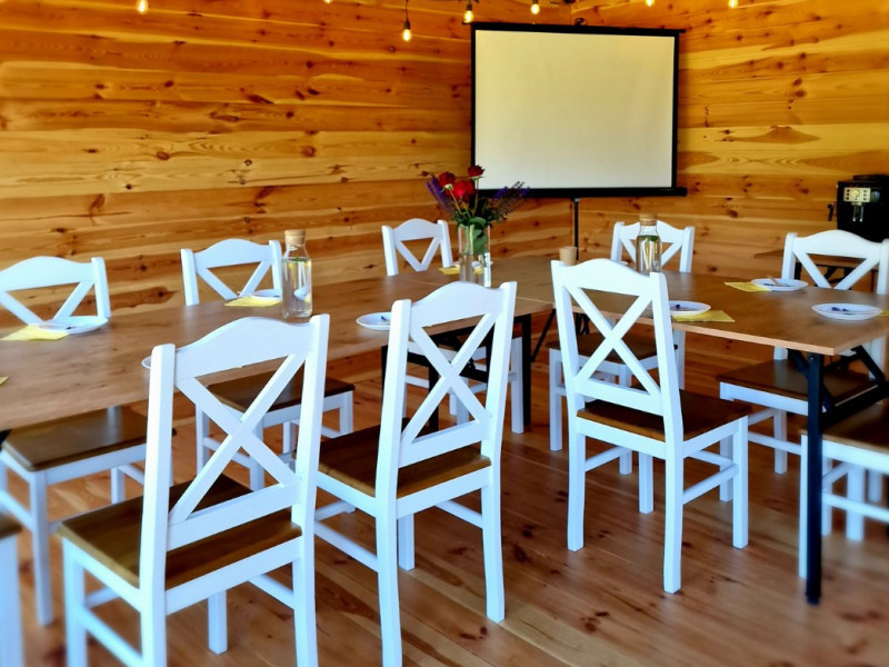 Sala w Przystani Jeziorany to idealna przestrzeń na różnego rodzaju przyjęcia i wydarzenia – swobodna, klimatyczna i sprzyjająca dobrej zabawie. Jest tu miejsce na taniec, muzykę oraz wspólne spędzanie czasu w większym gronie. Dodatkowym atutem jest możliwość noclegu na miejscu – w komfortowej willi oraz domkach, dzięki czemu goście nie muszą martwić się powrotem po imprezie.