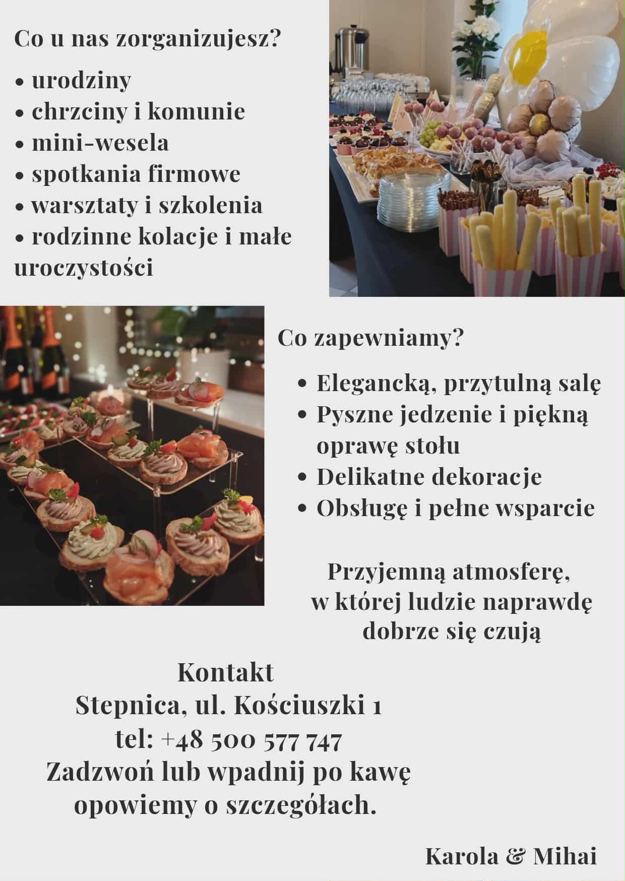 Sala na wyłącznośćTagi: Stepnica, Obiekty, Sale bankietowe, Kameralne restauracje na komunię i chrzciny, Eleganckie Chrzciny, Sala na kameralne wesele, obiad weselny, Sala do wynajęcia na chrzciny i komunie, Sala na rocznice ślubu, jubileusz, Lokal na wyłączność, Sala na urodziny, roczek i osiemnastkę, Miejsca na Baby Shower - Restauracje i Sale
