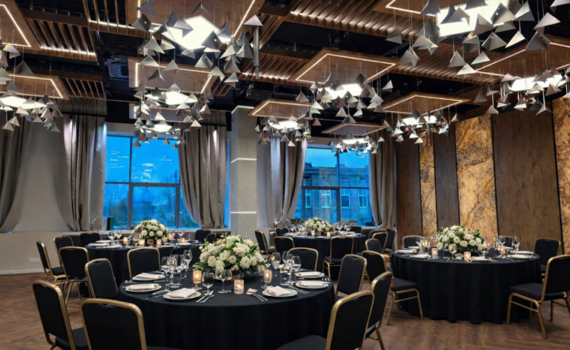 Sala bankietowa 99 Hz to elegancka, nowoczesna przestrzeń zaprojektowana z myślą o organizacji wyjątkowych uroczystości i wydarzeń. Stylowe wnętrza, starannie dopracowane detale oraz spójna aranżacja tworzą atmosferę, która podkreśla charakter każdego spotkania.