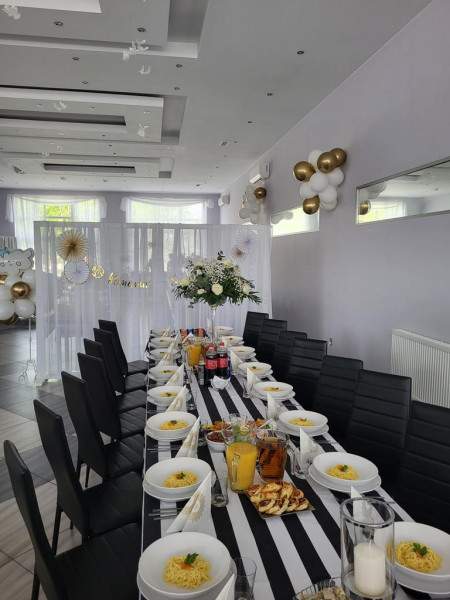 Obiekt doskonale sprawdza się podczas organizacji chrzcin, komunii, urodzin, jubileuszy, wesel oraz spotkań firmowych. Przestrzeń pozwala na przygotowanie zarówno większych przyjęć, jak i bardziej kameralnych uroczystości, dopasowanych do potrzeb Gości.