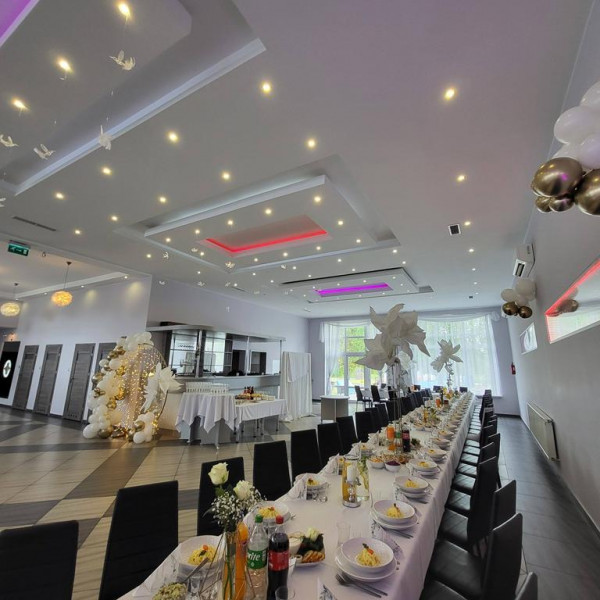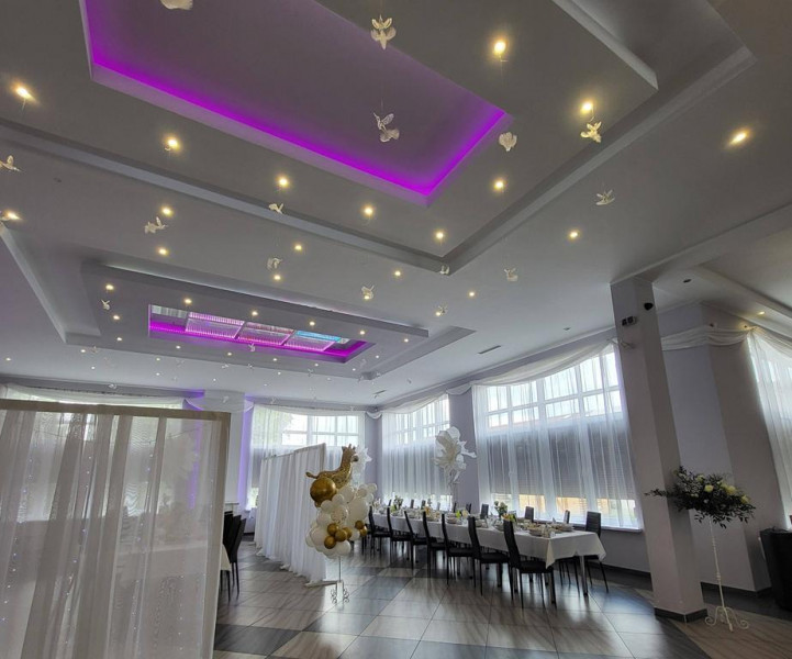 Do dyspozycji pozostaje przestronna sala bankietowa, która umożliwia komfortowe przyjęcie gości, a także odpowiednia infrastruktura pozwalająca na organizację wydarzeń w profesjonalnej oprawie.