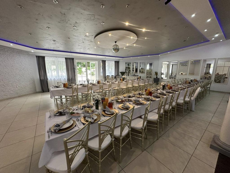Dysponujemy salą na 200 osób, wyposażoną w klimatyzację oraz niezbędny sprzęt do organizacji imprezy. Dużym atutem naszego miejsca jest iluminacja świetlna podkreślająca charakter imprezy. Posiadamy miejsca parkingowe, ogródek letni, profesjonalną obsługę a dla Nowożeńców przewidzieliśmy dodatkowo apartament w liczony w cenę. Do dyspozycji również miejsca noclegowe.