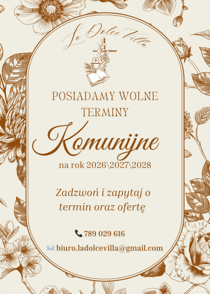 Obecnie przyjmujemy rezerwacje na przyjęcia komunijne w latach 2026, 2027 i 2028.