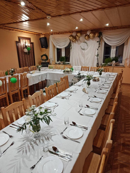 Obiekt oferuje przytulne pokoje 2-, 3- i 4-osobowe oraz bazę noclegową dla gości, dzięki czemu może być dobrą opcją na kameralne przyjęcia połączone z noclegiem. Na terenie znajduje się ogród, altana grillowa, miejsce do wypoczynku oraz przestrzeń przyjazna rodzinom z dziećmi.