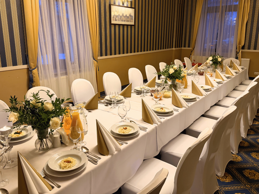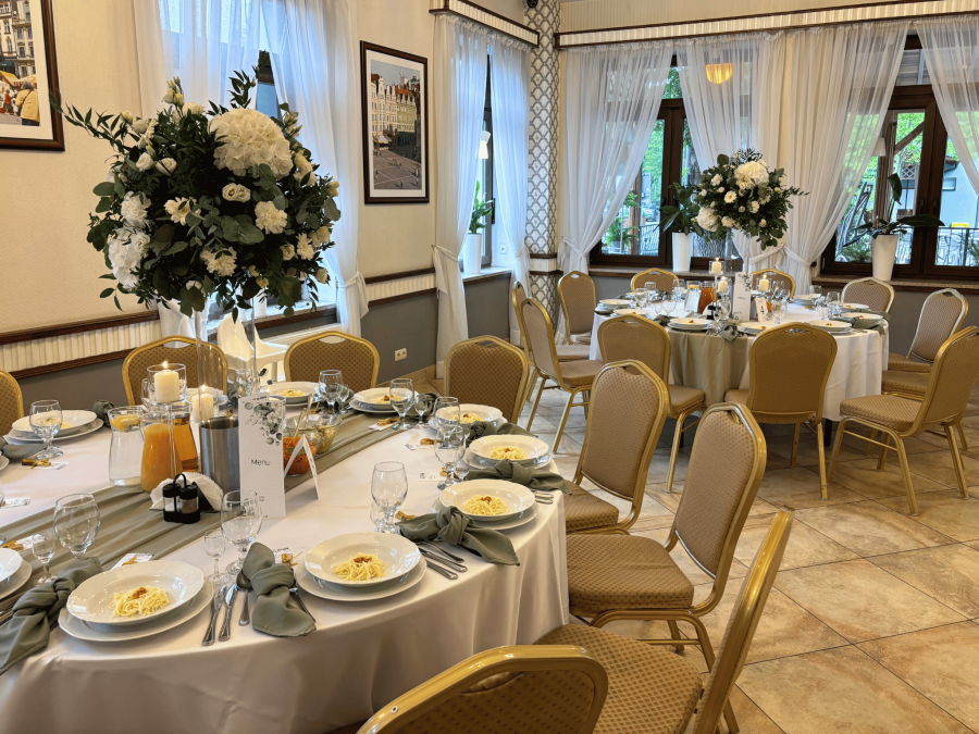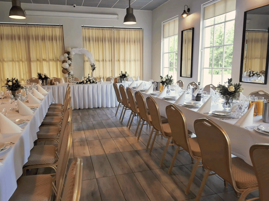 Organizujemy imprezy okolicznościowe od minimum 20 osób dorosłych. Nasze sale posiadają wyjście na werandę, co sprawia, że Goście mogą wyjść na dwór podczas trwania przyjęcia. To, co nas wyróżnia to piękny ogród, dużo zieleni.
