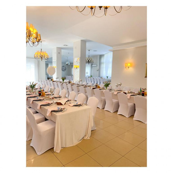 Na naszych Gości czekają nowoczesne, klimatyzowane wnętrza. Salę taneczna (160m2) i bankietowa (240m2) mieszczącą do 210 osób drink bar, urokliwe patio. Latem zaś zapraszamy do ogrodu z altaną i miejscem zabaw dla dzieci.