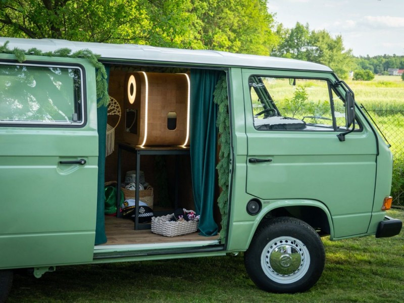 Nasz uroczy bus, pomalowany na szlachetny szałwiowy kolor, kryje w sobie przytulne, leśne wnętrze pełne naturalnych akcentów. To idealna przestrzeń do zdjęć i chwili relaksu, która z miejsca staje się nie tylko fotobudką, ale i oryginalną dekoracją Twojego wydarzenia.